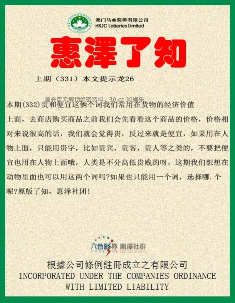 333期:黄大仙心水/简单好下注/台湾玄机诗/港台澳七肖/必中人物
